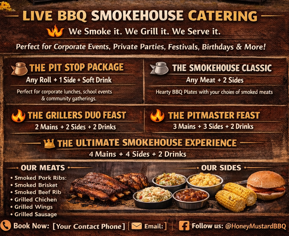 Big crowds or private functions — we’re built for both. Honey Mustard delivers firewood-smoked and grilled excellence with seamless execution. We combine bold flavour with high-volume service capability and professional event coordination.